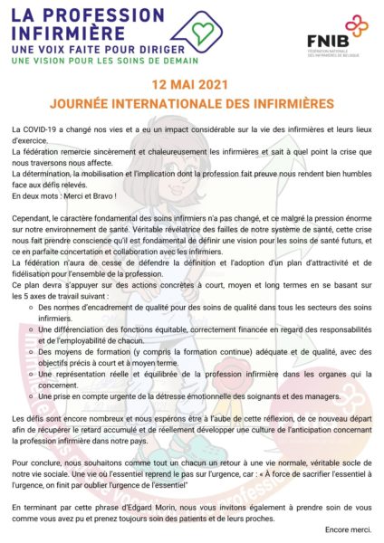 La FNIB remercie les infirmières pour la détermination, la mobilisation et l’implication dont elles font preuve!