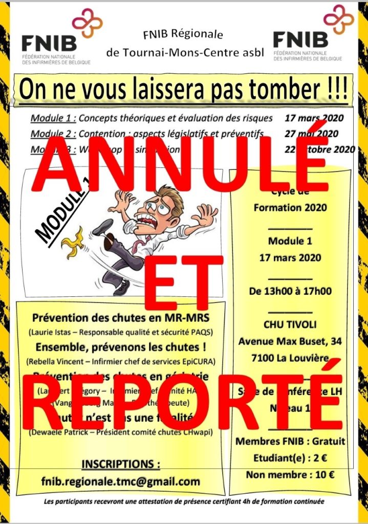 Par conséquent, ce mardi 17 mars, la FNIB régionale TMC a pris la décision d’annuler son 1ier module de formation au CHU Tivoli de 13h à 17h.