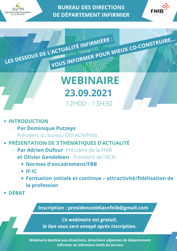 Le bureau des directions de département infirmier ACN/FNIB organise des webinaires thématiques.