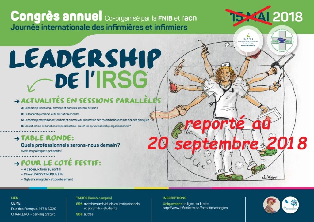 Le thème général de cette journée est : Le LEADERSHIP de l’Infirmier Responsable en Soins Généraux. Le programme, le timing et les modalités d’organisation resteront les mêmes.